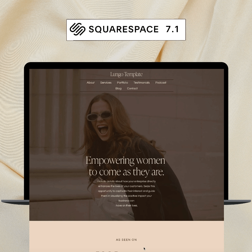 Lungo Squarespace Website Template | Minimalist and Editorial Squarespace 7.1 Template | Website design for Virtual Assistant, Bloggers, Health Coaches, Mindset Coaches, Podcast Creators, and female entrepreneurs